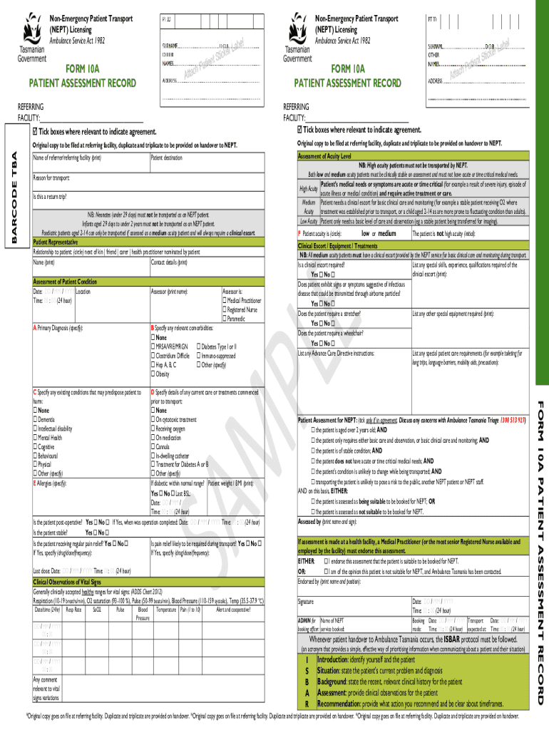 Non-emergency patient transport tasmanian department can be filled out online or through a paper form with relevant patient and transportation details.