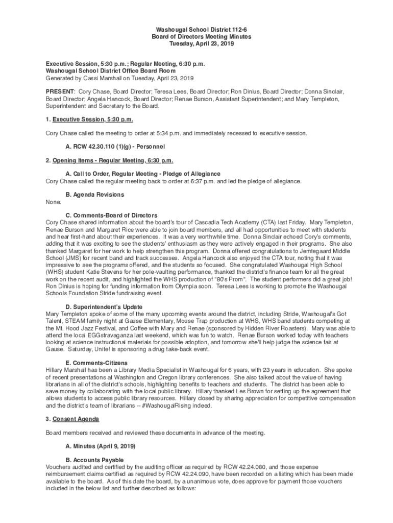 Executive Session, 5:30 p.m.; Regular Meeting, 6:30 p.m.