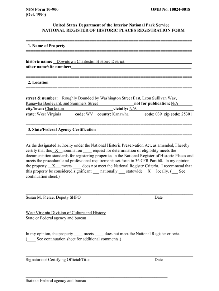 Research the specific requirements and guidelines for filling out the national register of historic places form.