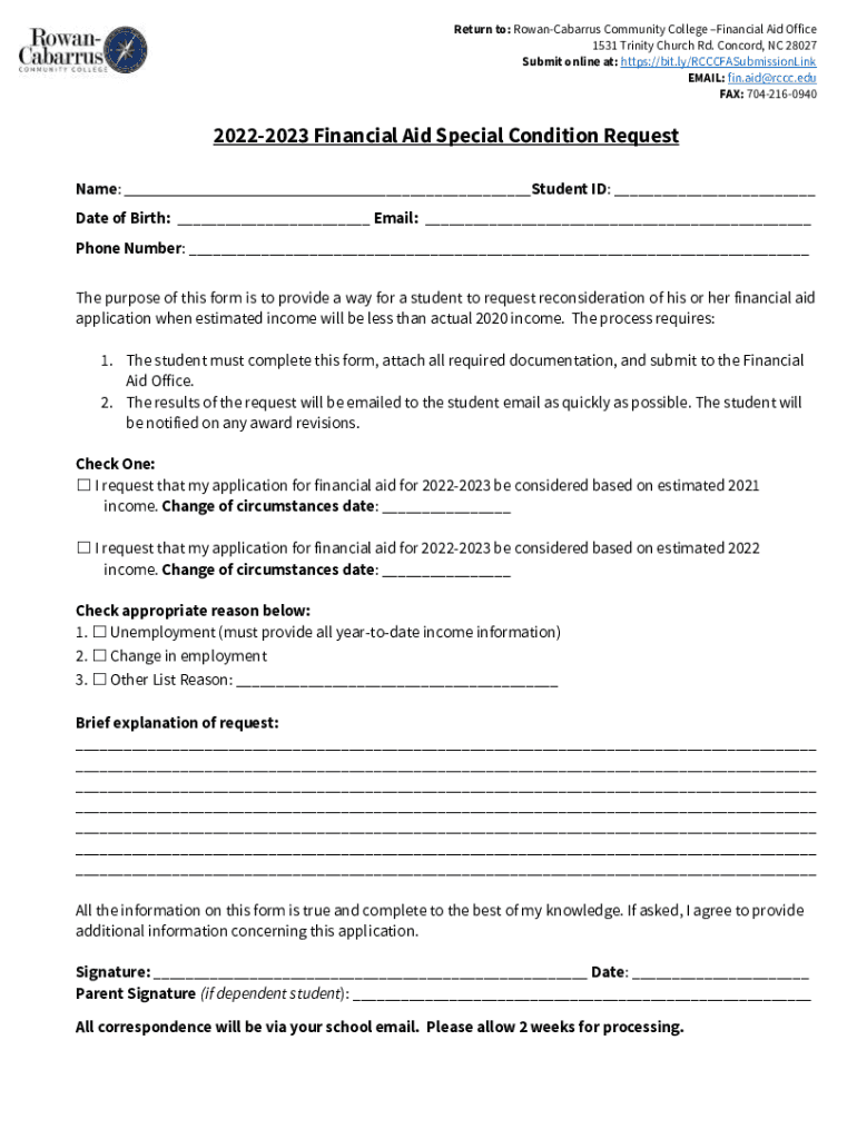 Get the free 2022-2023 Financial Aid Special Condition Request