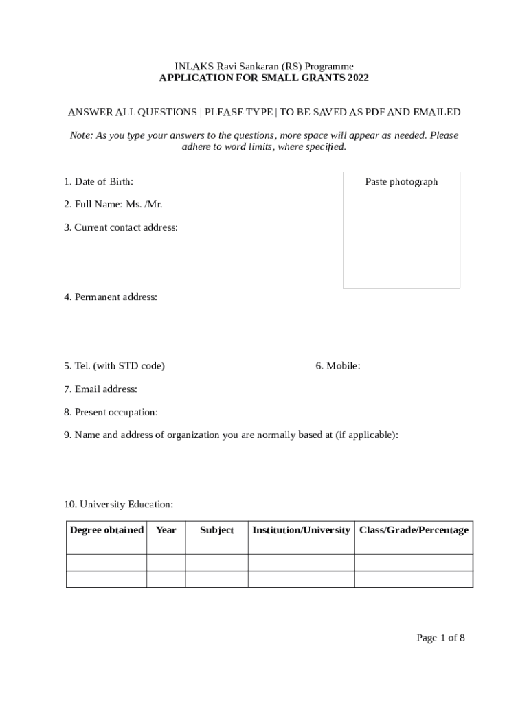 How to fill out Application--INLAKS-RS-Small-Grants-2022.docx