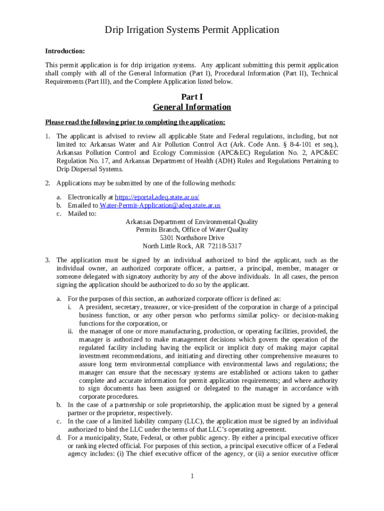 Instructions for the Drip Irrigation Systems Permit Application - ADEQ form