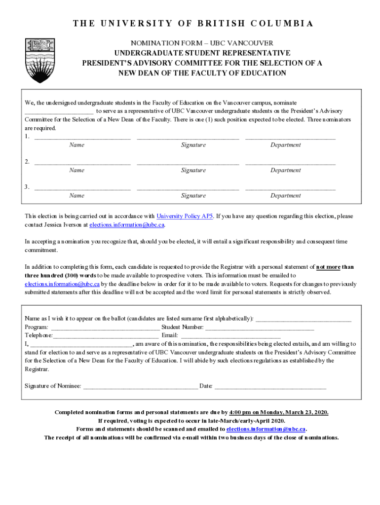 Get the free Nomination-Form-EDUC-DEAN-UBCV-Undergraduate-2020.doc - facultystaff students ubc
