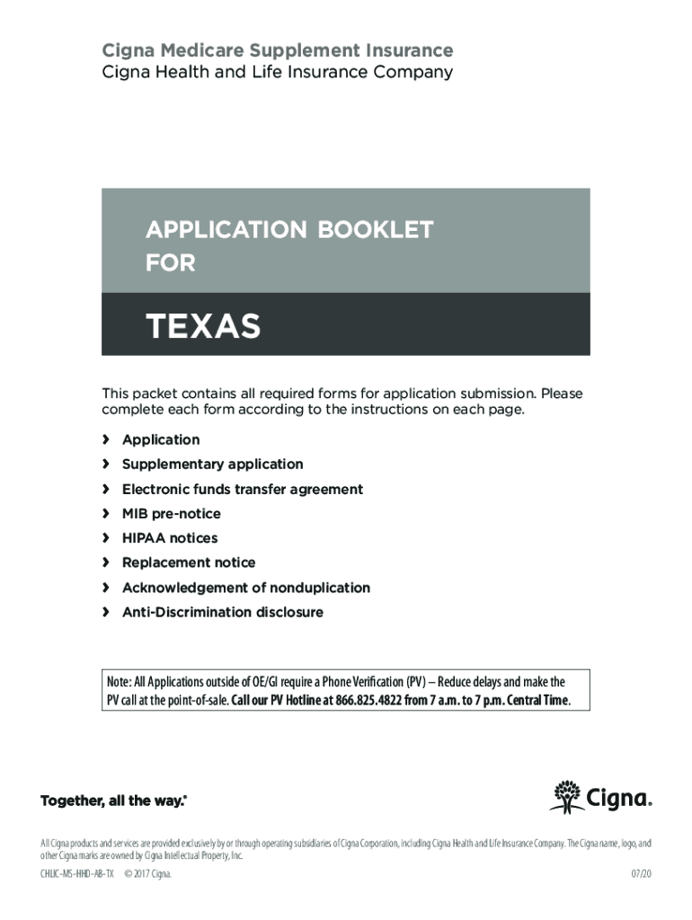 Cagney Medicare Supplement InsuranceCigna Health and Life Insurance Company application booklet fortes This packet contains all required forms for application submission. Please complete each form