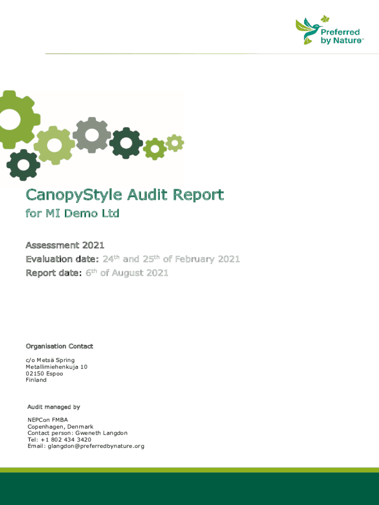 CanopyStyle Audit Report for MI Demo Ltd Assessment 2021 Evaluation date: 24th and 25th of February 2021 Report date: 6th of August 2021Organisation Contact c/o Mets Spring Metallimiehenkuja 10 02150