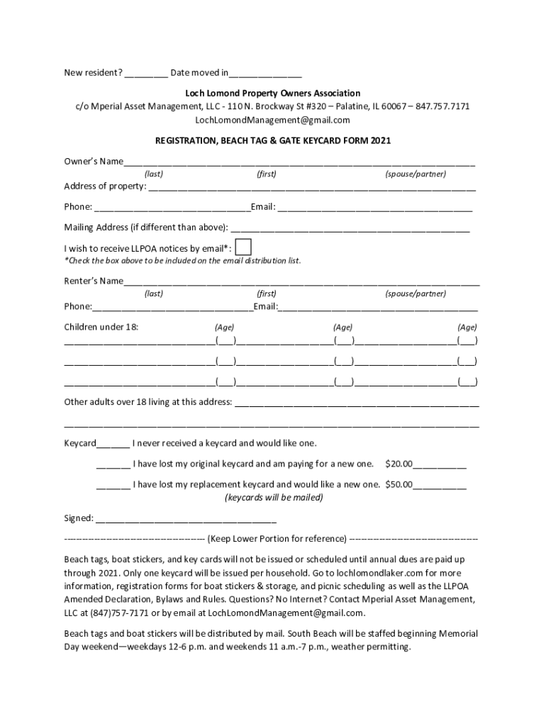 New resident? ___ Date moved in___ Lock Lomond Property Owners Association c/o Imperial Asset Management, LLC 110 N. Brock way St #320 Palatine, IL 60067 847.757.7171 LochLomondManagement@gmail.com