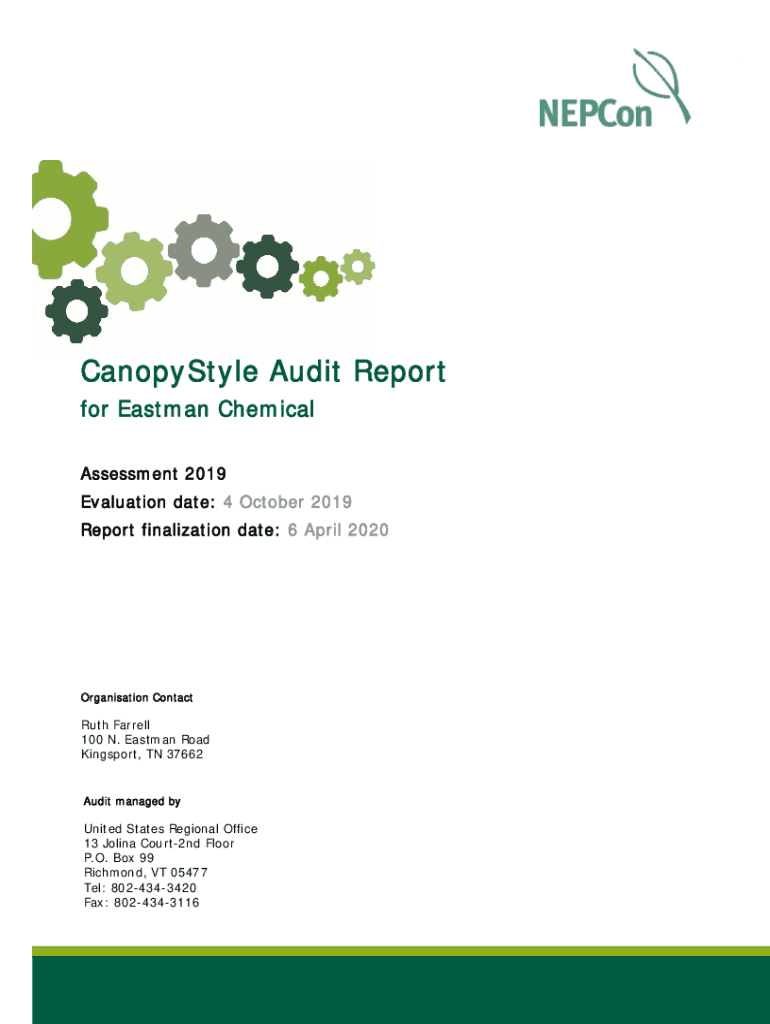 CanopyStyle Audit Report for Eastman Chemical Assessment 2019 Evaluation date: 4 October 2019 Report finalization date: 6 April 2020Organisation Contact Ruth Farrell 100 N. Eastman Road Kingsport,