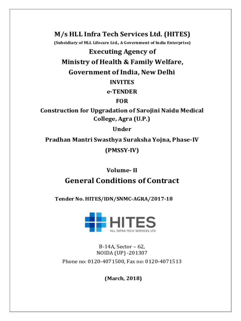 M/s ALL Infra Tech Services Ltd. (HITS) (Subsidiary of ALL Life care Ltd., A Government of India Enterprise)Executing Agency of Ministry of Health & Family Welfare, Government of India, New Delhi
