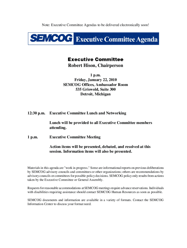 Get the free Note: Executive Committee Agendas to be delivered electronically soon