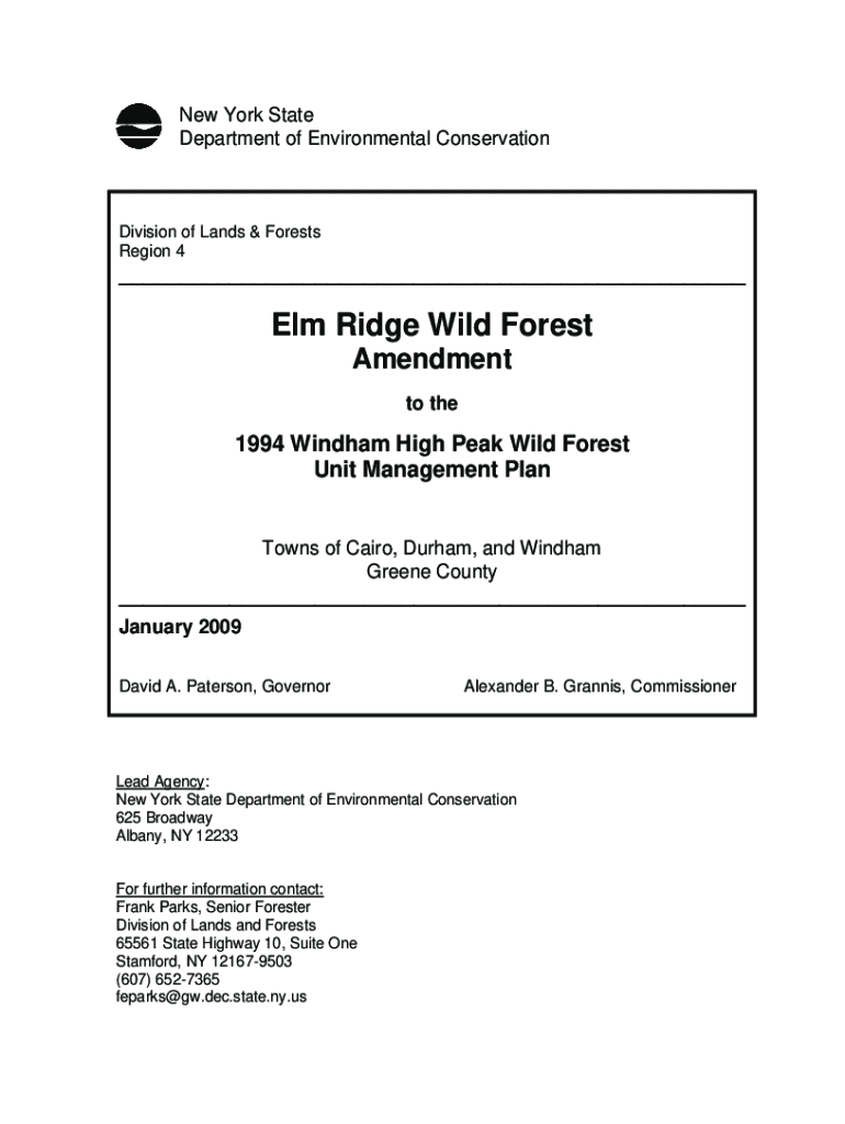 New York State Department of Environmental ConservationDivision of Lands & Forests Region 4___Elm Ridge Wild Forest Amendment to the1994 Wind ham High Peak Wild Forest Unit Management Plan Towns of