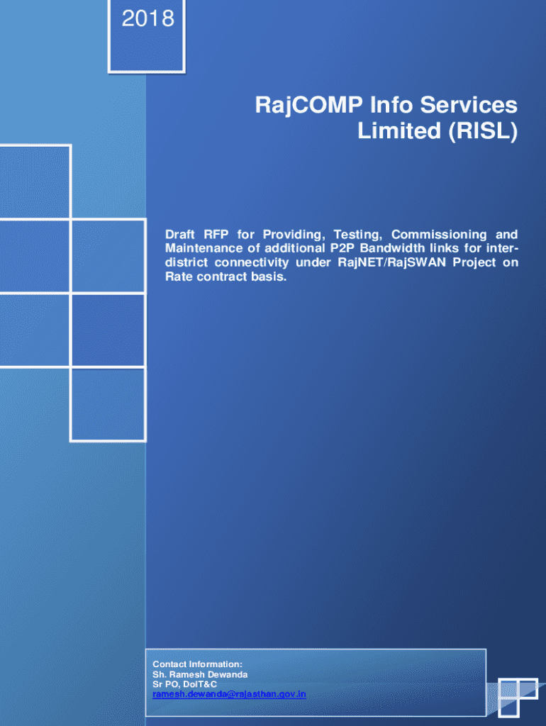 2018RajCOMP Info Services Limited (RISE)Draft RFP for Providing, Testing, Commissioning and Maintenance of additional P2P Bandwidth links for interdistrict connectivity under Magnet/Aswan Project