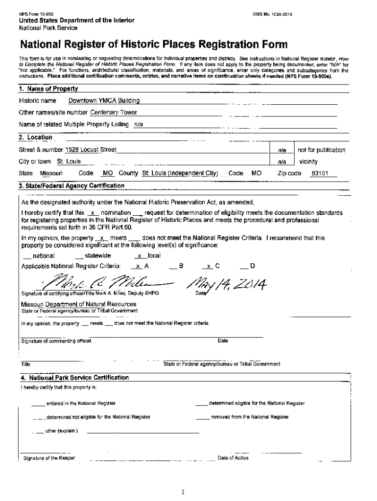 NPS Form 10900OMS No. 10240018United States Department of the interior National Park ServiceNational Register of: Historic Places Registration Form This form is for use in nominating or requesting