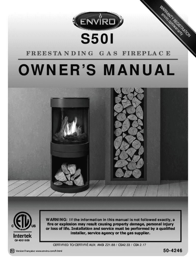 N TO RA y ST NT GI era RE /Wei TY on AN RO.c RR nevi WA eS50IFRE E ST AND I NG GAS F IRE PL OWNERS MANUALWARNING: If the information in this manual is not followed exactly, afire or explosion may