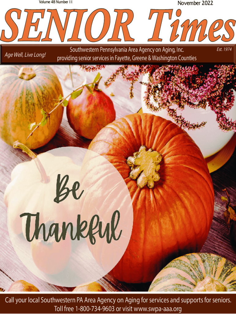 Volume 48 Number 11Age Well, Live Long! November 2022Southwestern Pennsylvania Area Agency on Aging, Inc. providing senior services in Fayette, Greene & Washington Counties. 1974Call your local Southwestern