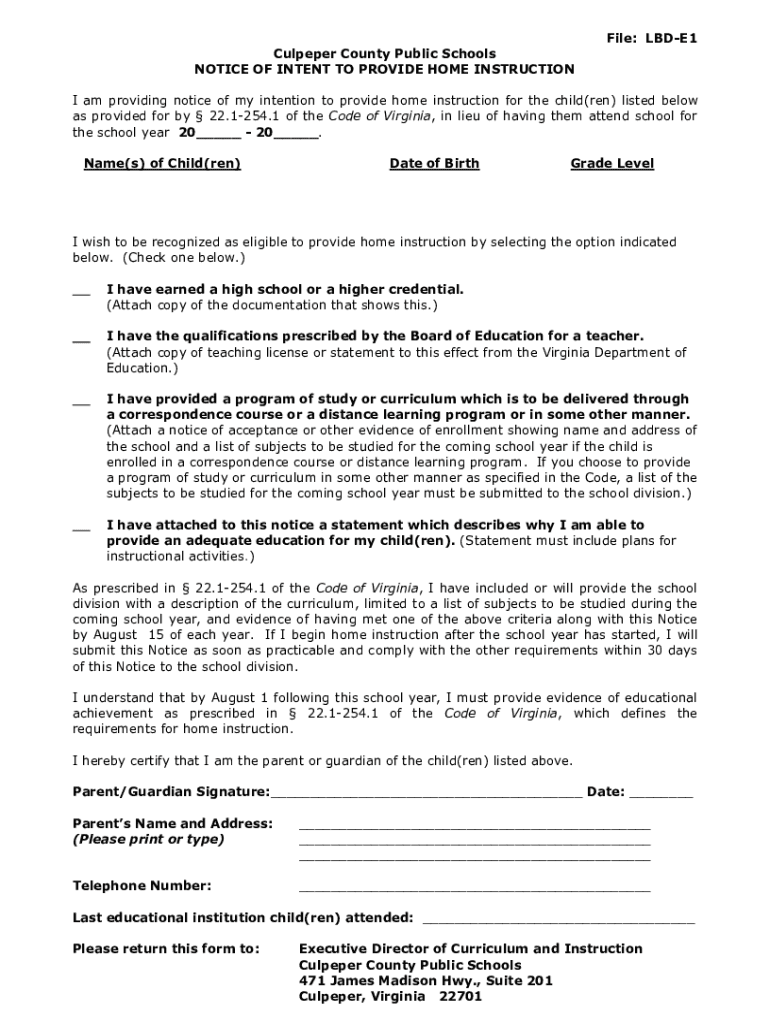 Get the free Notice Of Intent - Home Educators Association Of Virginia