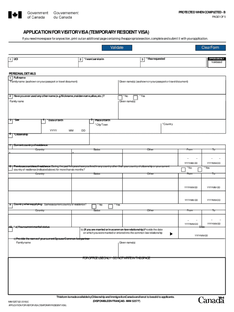PAGE1 OF 5APPLICATION FORVISITORVISA (TEMPORARYRESIDENT VISA)