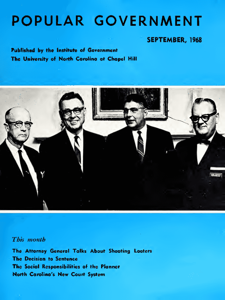 Published by the Institute of GovernmentTheUniversity of North Carolina at Chapel HillThismonthThe Attorney General Talks About Shooting Looters Decision to Sentence