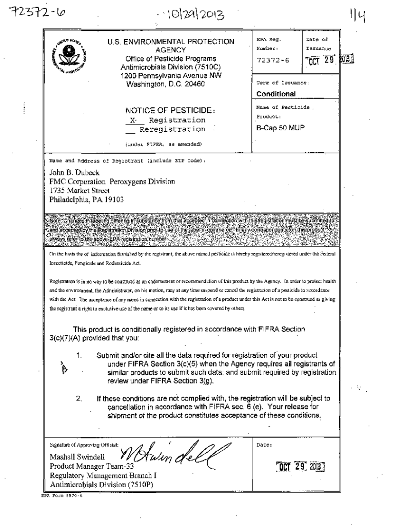 Get the free US EPA, Pesticide Product Label, B-CAP 50 MUP, 10/29/2013. Pesticide Product Label, ...