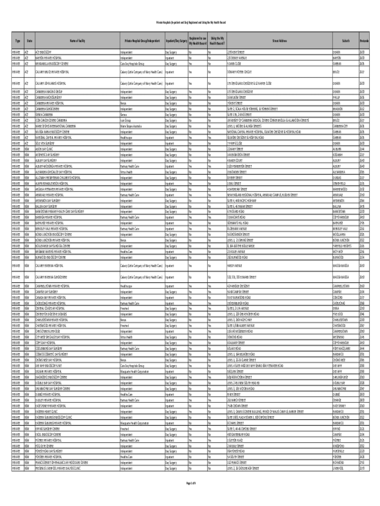 Private Hospitals (Inpatient and Day) Registered and Using the Health Ecotype