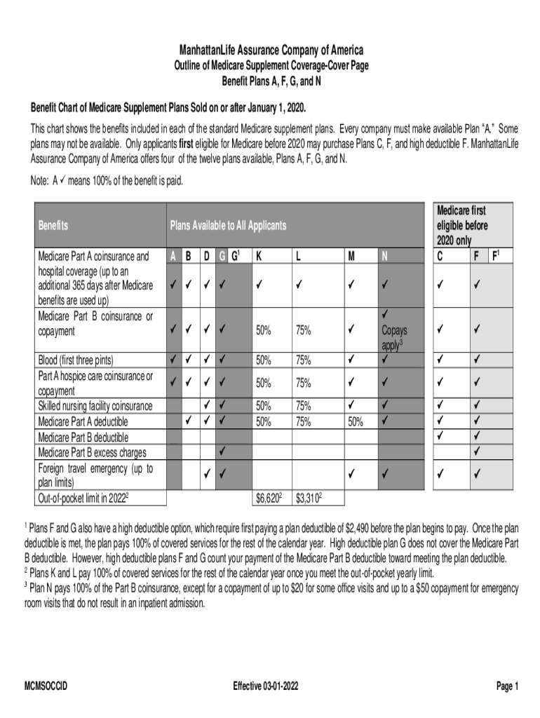 Get the free Benefit Chart of Medicare Supplement Plans Sold on or after January 1, 2020