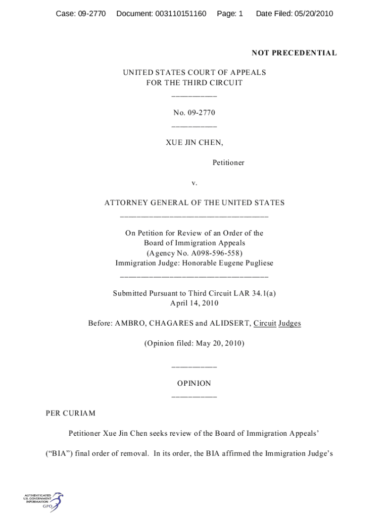 Get the free No. 09-2770XUE JIN CHEN, Petition - GovInfo