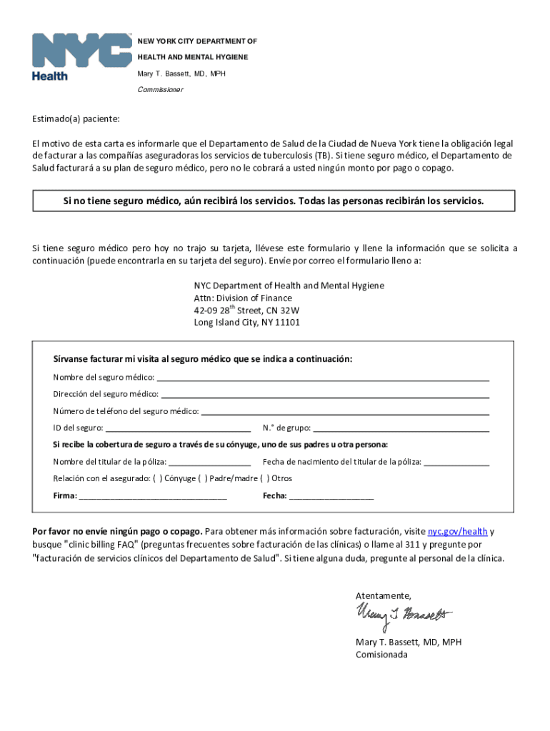 NEW YORK CITY DEPARTMENT OF HEALTH AND MENTAL HYGIENE Mary T. Bassett, MD, MPHCommissionerEstimado(a) patients: El motive de ESTA CARTA BS informal Que El Department de Salud de la Ciudad de Nueva