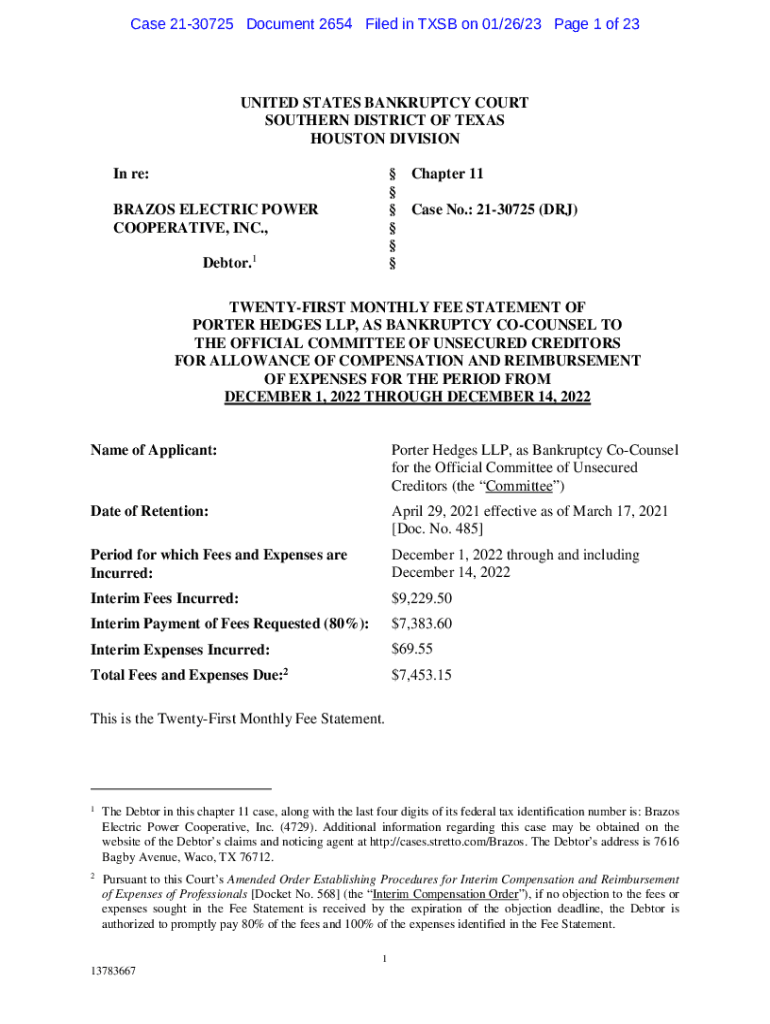Case 2130725 Document 2654 Filed in TSB on 01/26/23-Page 1 of 23UNITED STATES BANKRUPTCY COURT SOUTHERN DISTRICT OF TEXAS HOUSTON DIVISION In re: BRAZOS ELECTRIC POWER COOPERATIVE, INC., Debtor.1Chapter