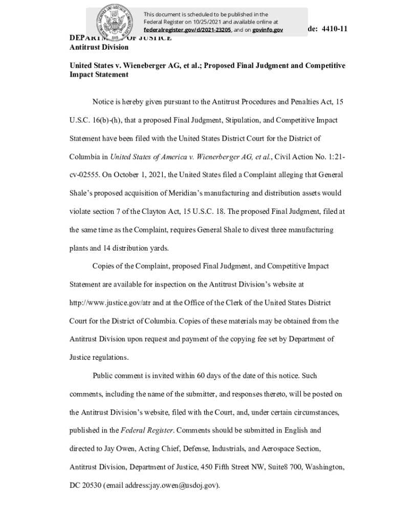 Get the free Billing Code: 4410-11 DEPARTMENT OF JUSTICE Antitrust Division ...