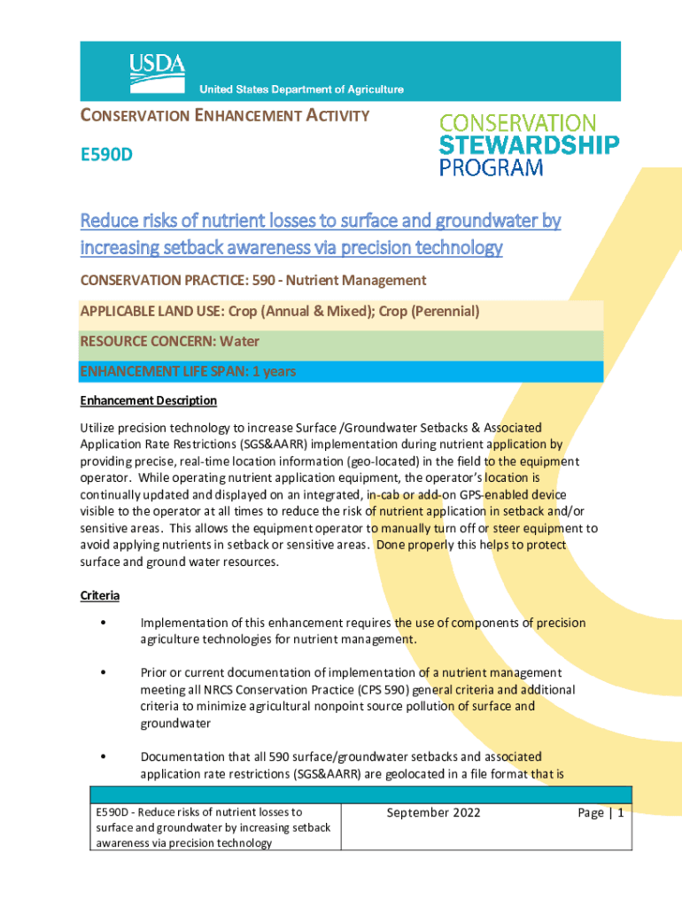 CONSERVATION ENHANCEMENT ACTIVITY E590D Reduce risks of nutrient losses to surface and groundwater by increasing setback awareness via precision technology CONSERVATION PRACTICE: 590 Nutrient Management