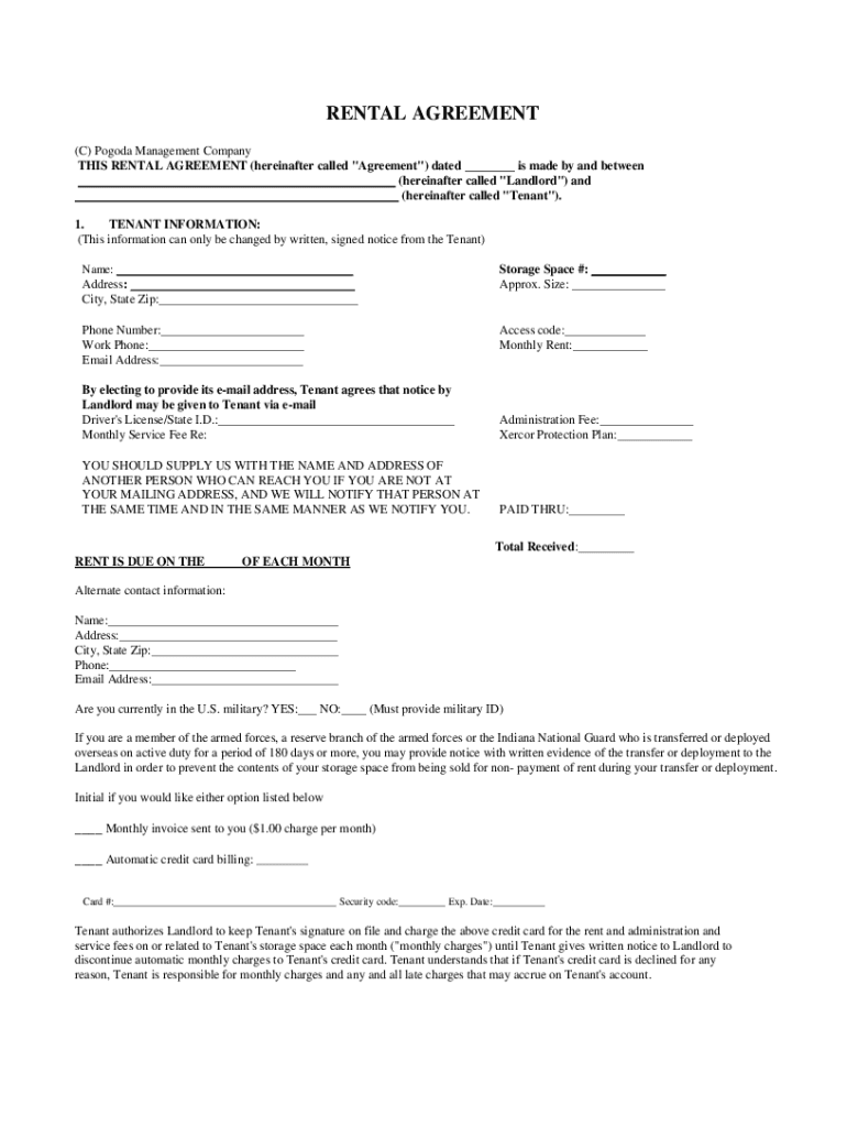 RENTAL AGREEMENT © Pagoda Management Company THIS RENTAL AGREEMENT (hereinafter called \” Agreement\”) dated ___ is made by and between ___ (hereinafter called \” Landlord\”) and ___ (hereinafter