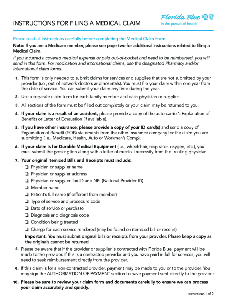 INSTRUCTIONS FOR FILING A MEDICAL CLAIM Please read all instructions carefully before completing the Medical Claim Form. Note: If you are a Medicare member, please see page two for additional instructions