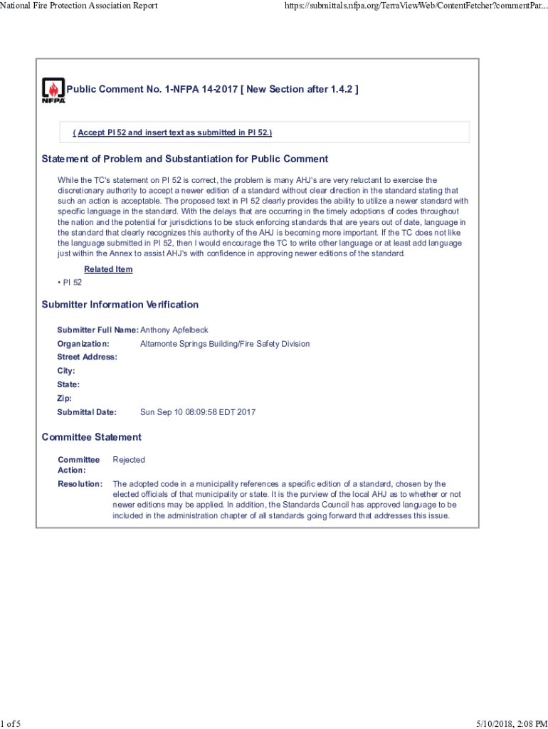 National Fire Protection Association Report1 of 5https://submittals.nfpa.org/TerraViewWeb/ContentFetcher?commentPar... Public Comment No. 1NFPA 142017 [New Section after 1.4.2](Except PI 52 and insert