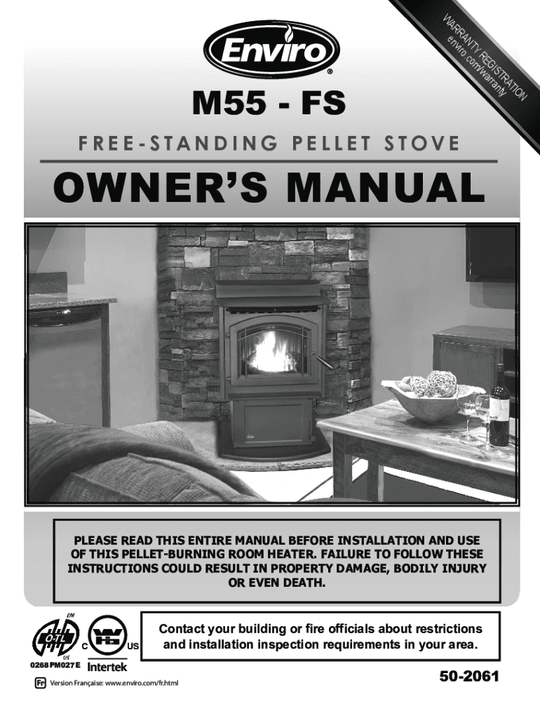 N TO RA y ST NT GI era RE /Wei TY on AN RO.c RR nevi WA eM55 FSF RE EST AND I NG PE LEE T S HOMEOWNERS MANUALPLEASE READ THIS ENTIRE MANUAL BEFORE INSTALLATION AND USE OF THIS PELLETBURNING ROOM HEATER.