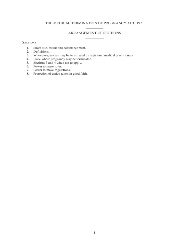 THE MEDICAL TERMINATION OF PREGNANCY ACT, 1971 ___ ARRANGEMENT OF SECTIONS ___ SECTIONS 1. 2. 3. 4. 5. 6. 7. 8. Short title, extent and commencement. Definitions. When pregnancies may be terminated