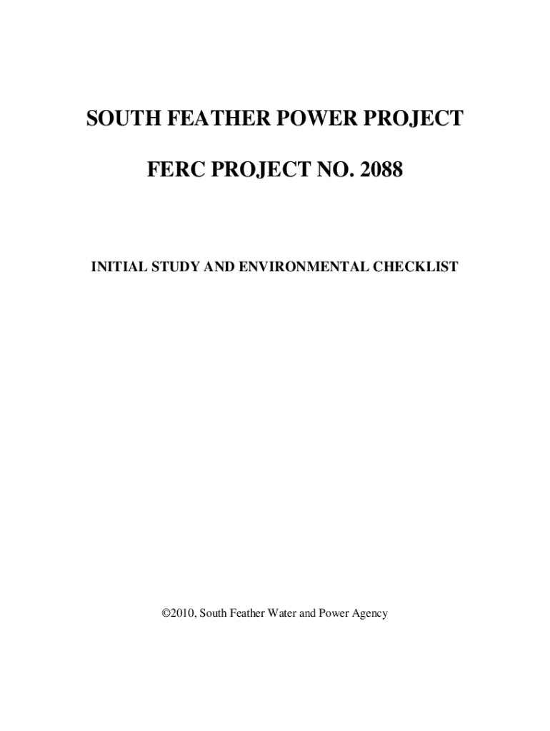 SOUTH FEATHER POWER PROJECT FERC Projects NO. 2088INITIAL STUDY AND ENVIRONMENTAL CHECKLIST2010, South Feather Water and Power AgencyINITIAL STUDY AND ENVIRONMENTAL CHECKLIST South Feather Power Project,
