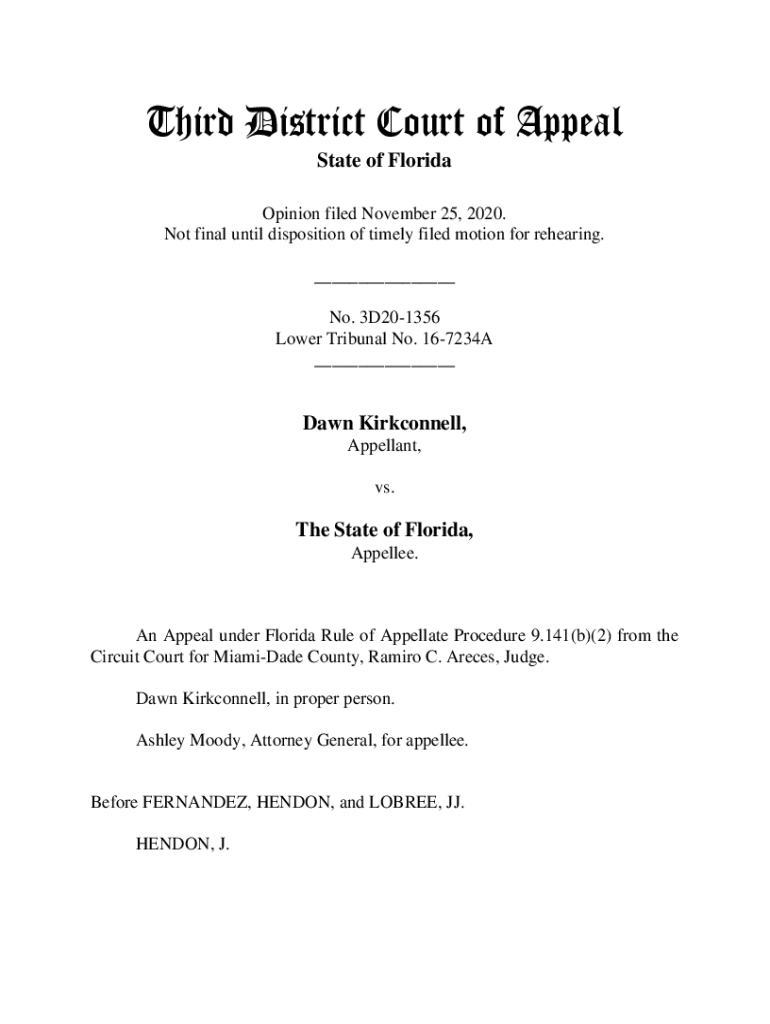 Third District Court of Appeal State of Florida Opinion filed November 25, 2020. Not final until disposition of timely filed motion for rehearing. ___ No. 3D201356 Lower Tribunal No. 167234A ___Dawn