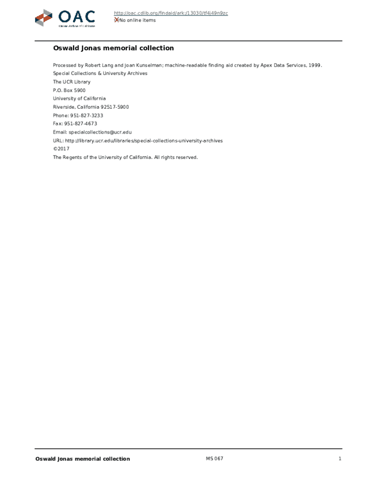 Get the free Noble Family Papers: Finding Aid - Online Archive of California - pdf oac cdlib
