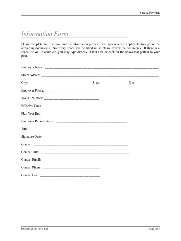 Special Pay PlanInformation Form Please complete the first page and the information provided will appear where applicable throughout the remaining documents. Not every space will be filled in, so