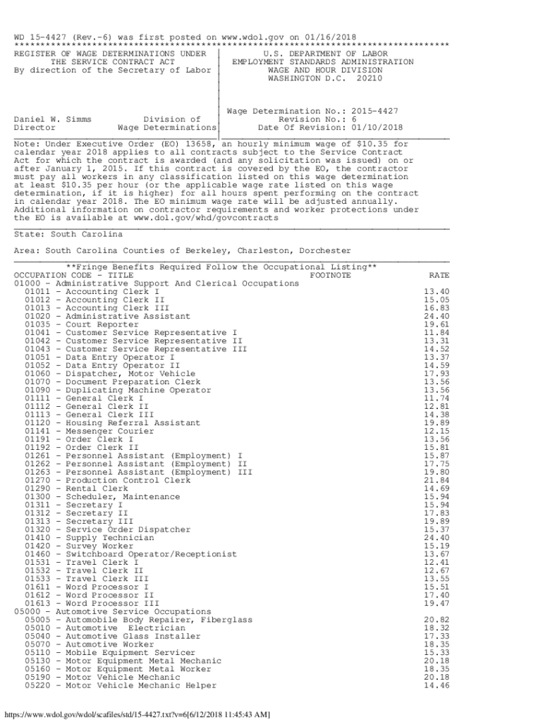 WD 154427 (Rev.6) was first posted on www.wdol.gov on 01/16/2018 ************************************************************************************ REGISTER OF WAGE DETERMINATIONS UNDER | U.S. DEPARTMENT