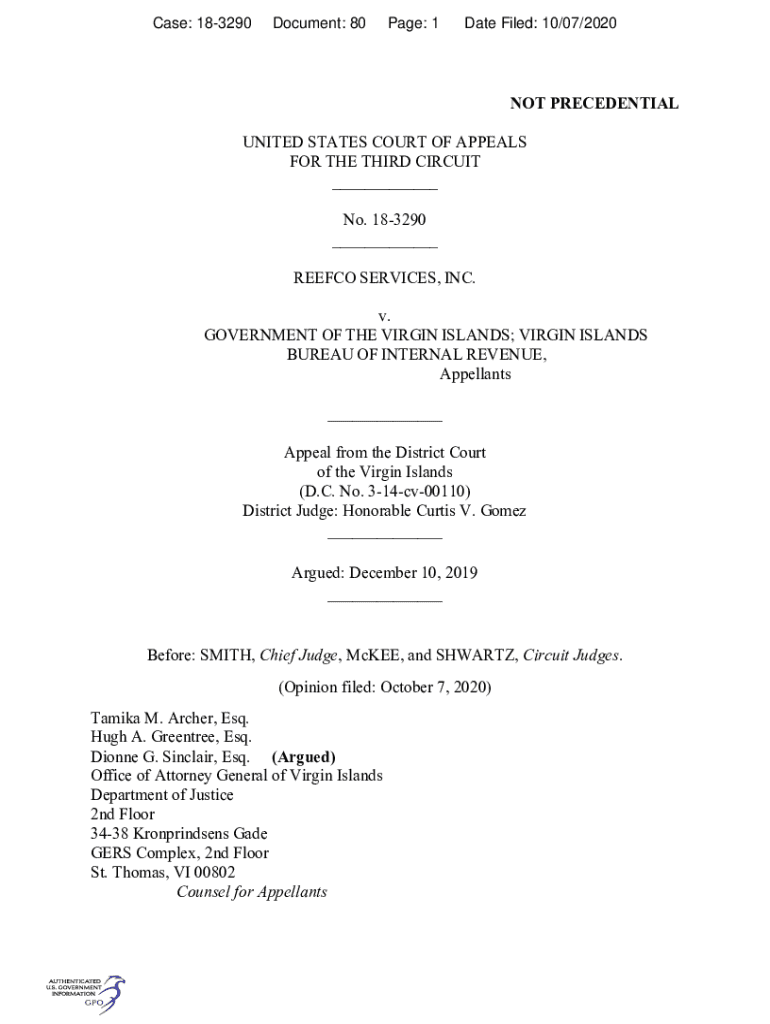 Case: 183290Document: 80Page: 1Date Filed: 10/07/2020NOT PRESIDENTIAL UNITED STATES COURT OF APPEALS FOR THE THIRD CIRCUIT ___ No. 183290 ___ REEF CO SERVICES, INC. v. GOVERNMENT OF THE VIRGIN ISLANDS;