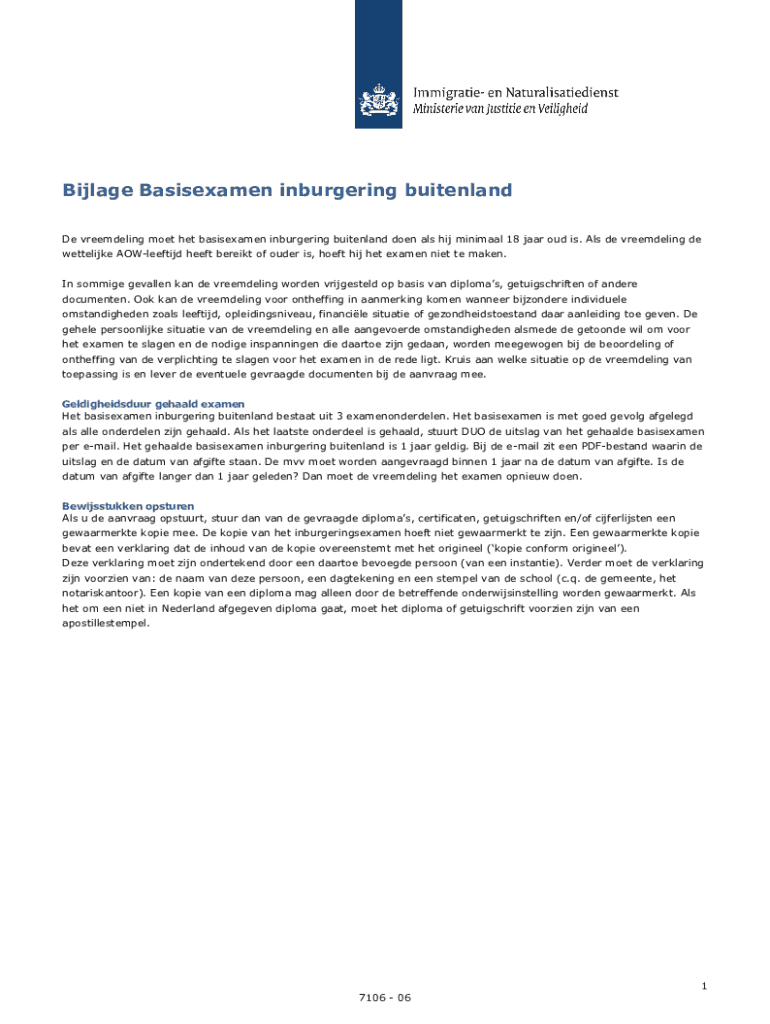 Pak de gratis De vreemdeling moet het basisexamen inburgering buitenland doen als hij minimaal 18...