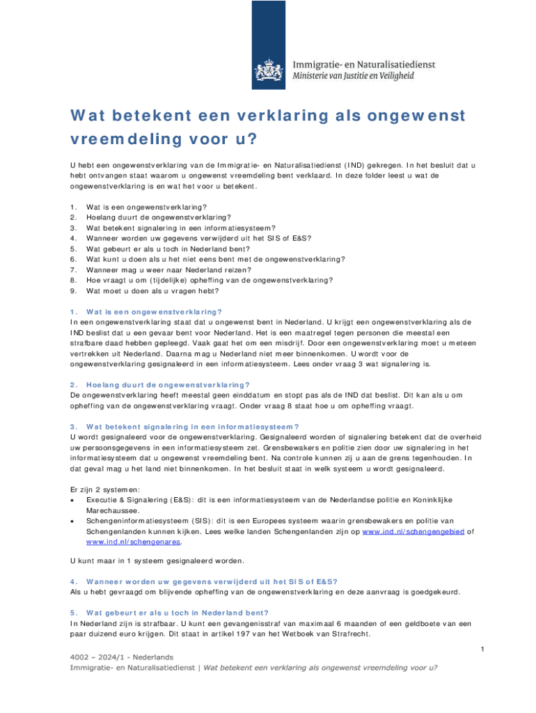 Wat betekent een verklaring als ongewenst vreemdeling voor u? U hebt een ongewenstverklaring van de Immigratie en Naturalisatiedienst (IND) gekregen. In het besluit dat u hebt ontvangen staat waarom