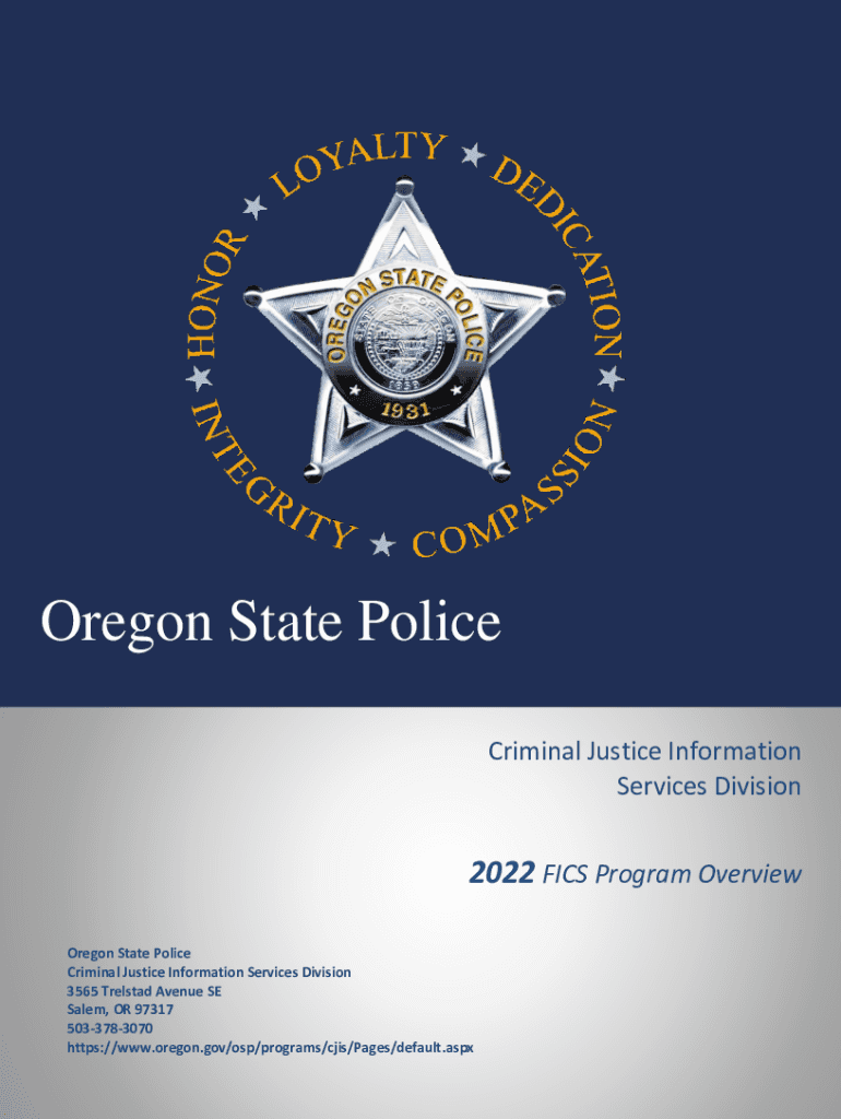 Oregon State Police Oregon State Police Criminal Justice Information Services Division2022 FINS Program Overview Oregon State Police Criminal Justice Information Services Division 3565 Related Avenue