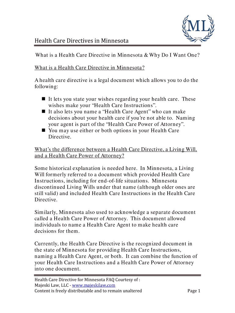 Get the free Health Care Directives in Minnesota. Health Care Directives in Minnesota