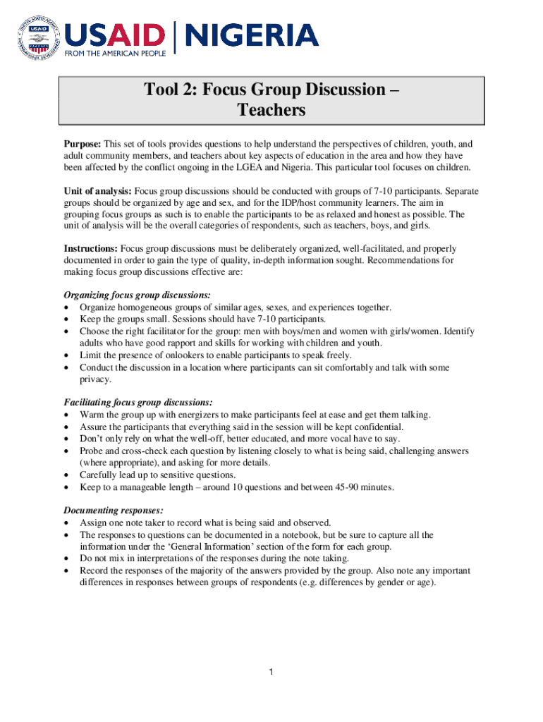 Get the free Focus Group Interviews in Child, Youth, and Parent Research - pdf usaid