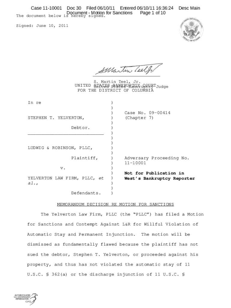Case 1110001Doc 30 Filed 06/10/11 Entered 06/10/11 16:36:24 Document Motion for Sanctions Page 1 of 10Desc Maine document below is hereby signed. Signed: June 10, 2011___ S. Martin Feel, Jr. UNITED