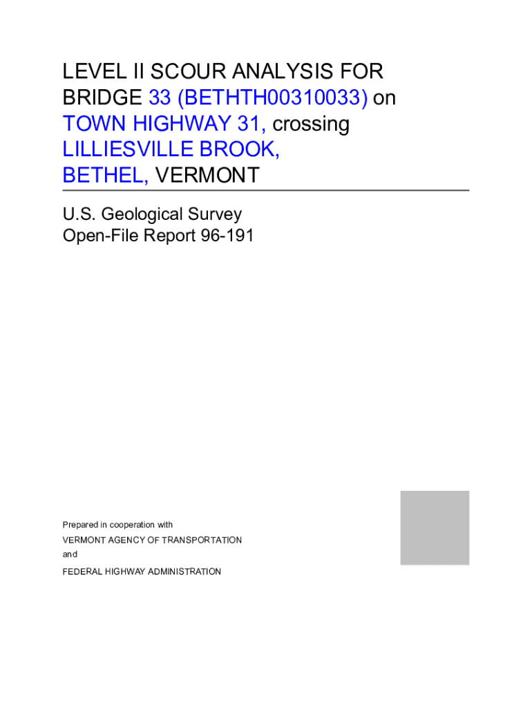 LEVEL II SCOUR ANALYSIS FOR BRIDGE 33 (BETHTH00310033) on TOWN HIGHWAY 31, crossing COLLIERVILLE BROOK, ETHEL, VERMONT U.S. Geological Survey Penile Report 96191Prepared in cooperation with VERMONT