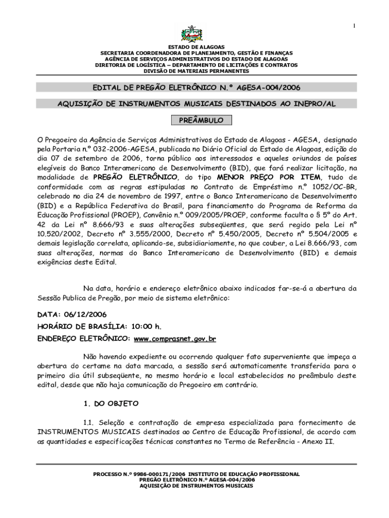 Get the free O Pregoeiro da Agncia de Servios Administrativos do Estado de Alagoas - AGESA, desig...