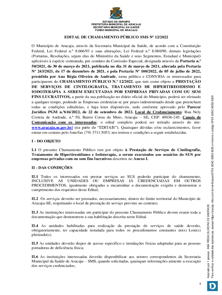 FUNDS MUNICIPAL DE ARACAJU Municipal de Aracaju, trans the Secretariat Municipal the Sade, DE cord com a Constitute