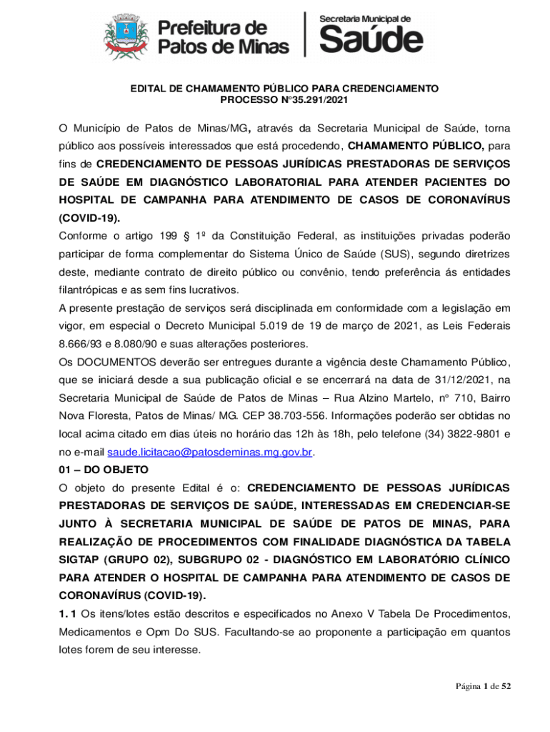 PROCESS N35.291/2021O Municipal de Patos de Mines/MG, trans the Secretariat Municipal de Sade, torn